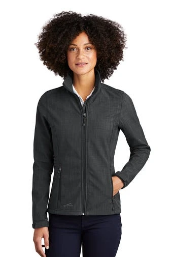 Gear up for the office or a weekend adventure in this soft shell that offers water protection and breathability thanks to its 3K/3K fabric. 3000MM fabric water protection rating. 3000G/M2 fabric breathability rating. Reverse coil zippers, front zippered pockets, adjustable tab cuffs with hook and loop closures and an open hem. Princess seams. Embroidered Eddie Bauer contrast logo on right hem. Made of a 100% polyester woven shell bonded to a water-resistant laminated film insert and a 100% polyester fleece.