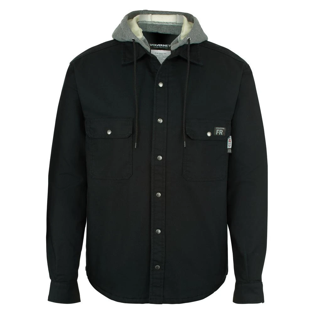 Aramid high-tenacity fire-resistant thread helps create this Wolverine black jacket, and it’s super durable and secure. To make certain your head has protection, too, this canvas outerwear design features a snap hood that’s also detachable. Two chest pockets have flap and snap closures to provide you with convenient, secure storage, so feel free to fill these up with your smaller, necessary items like gadgets, cell phones, pens, and more.